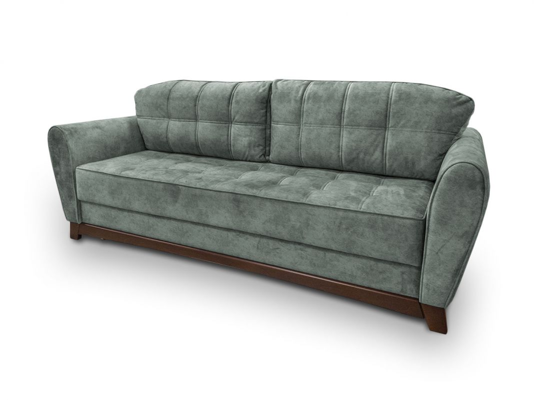 У дивана высокие, широкие подлокотники. Спиновые подушки выполнены из высокоэластичного пенополеуретана и полиэфирного волокна Холофайбер. Чехол подушек прошит на подкладке из бязи. Модель очень удобна и комфортна как по посадке, так и при ежедневном сне. Ножки и декор из натурального дерева (массива бука) добавляют респектабельность дивану.
