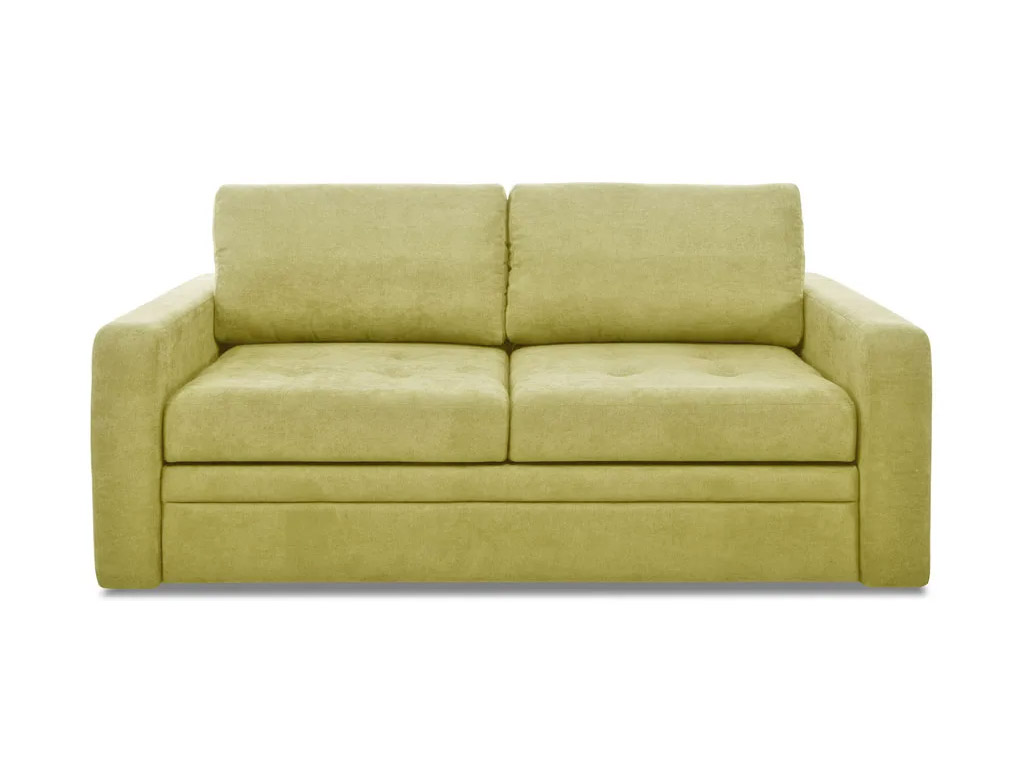 Компактный диван-кровать с двумя вариантами подлокотников: 10 и 15 см. Подвижные валики на спинке позволяют менять положение подушек. Декоративные отделочные строчки и глубокие утяжки на сиденье предохраняют ткань обивки от растяжения. Диван легко помещается даже в маленькой комнате. При небольших габаритах дивана размер спального места достаточно комфортный — 198×153 (или 133) см. Диван просто раскладывается благодаря надежному механизму трансформации. По желанию подлокотники 15 см могут быть выполнены с декоративными накладками и тонированы в цвет венге, орех, махагон, или беленый дуб.