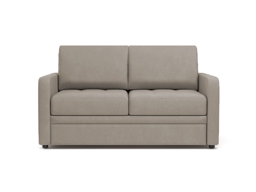 Компактный диван-кровать с двумя вариантами подлокотников: 10 и 15 см. Подвижные валики на спинке позволяют менять положение подушек. Декоративные отделочные строчки и глубокие утяжки на сиденье предохраняют ткань обивки от растяжения. Диван легко помещается даже в маленькой комнате. При небольших габаритах дивана размер спального места достаточно комфортный — 198×133 см. Диван просто раскладывается благодаря надежному механизму трансформации. По желанию подлокотники 15 см могут быть выполнены с декоративными накладками и тонированы в цвет венге, орех, махагон, или беленый дуб.
