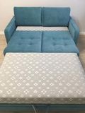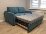 Компактный диван-кровать с двумя вариантами подлокотников: 10 и 15 см. Подвижные валики на спинке позволяют менять положение подушек. Декоративные отделочные строчки и глубокие утяжки на сиденье предохраняют ткань обивки от растяжения. Диван легко помещается даже в маленькой комнате. При небольших габаритах дивана размер спального места достаточно комфортный — 198×133 см. Диван просто раскладывается благодаря надежному механизму трансформации. По желанию подлокотники 15 см могут быть выполнены с декоративными накладками и тонированы в цвет венге, орех, махагон, или беленый дуб.