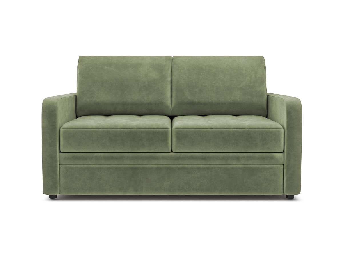 Компактный диван-кровать с двумя вариантами подлокотников: 10 и 15 см. Подвижные валики на спинке позволяют менять положение подушек. Декоративные отделочные строчки и глубокие утяжки на сиденье предохраняют ткань обивки от растяжения. Диван легко помещается даже в маленькой комнате. При небольших габаритах дивана размер спального места достаточно комфортный — 198×133 см. Диван просто раскладывается благодаря надежному механизму трансформации. По желанию подлокотники 15 см могут быть выполнены с декоративными накладками и тонированы в цвет венге, орех, махагон, или беленый дуб.