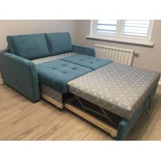 Компактный диван-кровать с двумя вариантами подлокотников: 10 и 15 см. Подвижные валики на спинке позволяют менять положение подушек. Декоративные отделочные строчки и глубокие утяжки на сиденье предохраняют ткань обивки от растяжения. Диван легко помещается даже в маленькой комнате. При небольших габаритах дивана размер спального места достаточно комфортный — 198×133 см. Диван просто раскладывается благодаря надежному механизму трансформации. По желанию подлокотники 15 см могут быть выполнены с декоративными накладками и тонированы в цвет венге, орех, махагон, или беленый дуб.