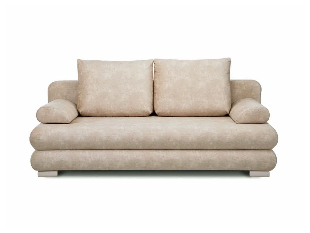 Практичный диван со съемными подлокотниками. Сиденье, в основании которого — деревянный щит и независимый пружинный блок, мягкое и ровное, а съемные подушки-подлокотники позволяют при необходимости увеличить его площадь. На выбор две длины дивана — 1900 мм и 2020 мм. Ножки облицованы шпоном дуба цвета венге или ореха. Диван удобно раскладывать благодаря простому и надежному механизму трансформации. Спальные принадлежности легко помещаются в объемный бельевой ящик. При небольших габаритах дивана спальное место достаточно просторно.
