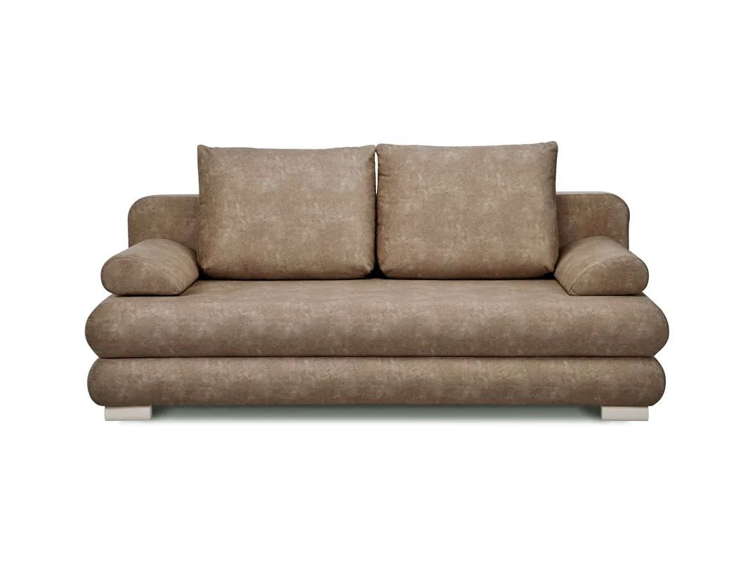 Практичный диван со съемными подлокотниками. Сиденье, в основании которого — деревянный щит и независимый пружинный блок, мягкое и ровное, а съемные подушки-подлокотники позволяют при необходимости увеличить его площадь. На выбор две длины дивана — 1900 мм и 2020 мм. Ножки облицованы шпоном дуба цвета венге или ореха. Диван удобно раскладывать благодаря простому и надежному механизму трансформации. Спальные принадлежности легко помещаются в объемный бельевой ящик. При небольших габаритах дивана спальное место достаточно просторно.