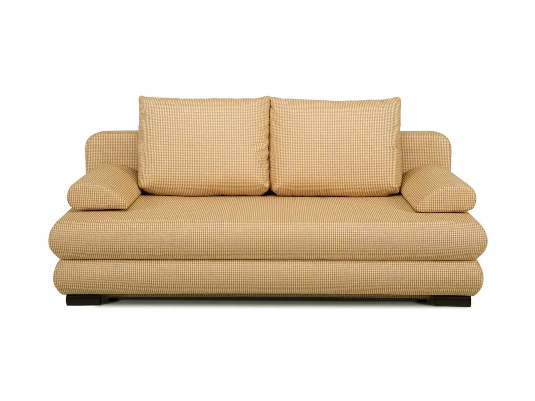 Практичный диван со съемными подлокотниками. Сиденье, в основании которого — деревянный щит и независимый пружинный блок, мягкое и ровное, а съемные подушки-подлокотники позволяют при необходимости увеличить его площадь. На выбор две длины дивана — 1900 мм и 2020 мм. Ножки облицованы шпоном дуба цвета венге или ореха. Диван удобно раскладывать благодаря простому и надежному механизму трансформации. Спальные принадлежности легко помещаются в объемный бельевой ящик. При небольших габаритах дивана спальное место достаточно просторно.