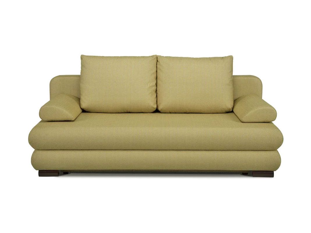 Практичный диван со съемными подлокотниками. Сиденье, в основании которого — деревянный щит и независимый пружинный блок, мягкое и ровное, а съемные подушки-подлокотники позволяют при необходимости увеличить его площадь. На выбор две длины дивана — 1900 мм и 2020 мм. Ножки облицованы шпоном дуба цвета венге или ореха. Диван удобно раскладывать благодаря простому и надежному механизму трансформации. Спальные принадлежности легко помещаются в объемный бельевой ящик. При небольших габаритах дивана спальное место достаточно просторно.