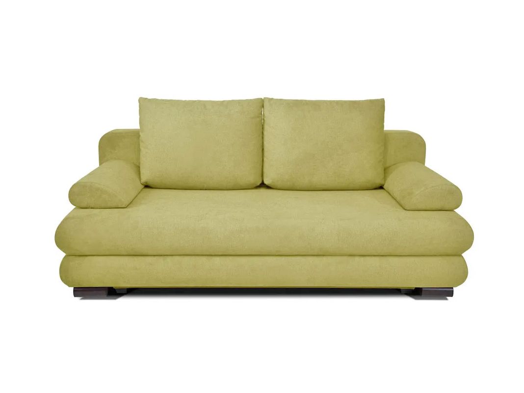 Практичный диван со съемными подлокотниками. Сиденье, в основании которого — деревянный щит и независимый пружинный блок, мягкое и ровное, а съемные подушки-подлокотники позволяют при необходимости увеличить его площадь. На выбор две длины дивана — 1900 мм и 2020 мм. Ножки облицованы шпоном дуба цвета венге или ореха. Диван удобно раскладывать благодаря простому и надежному механизму трансформации. Спальные принадлежности легко помещаются в объемный бельевой ящик. При небольших габаритах дивана спальное место достаточно просторно.
