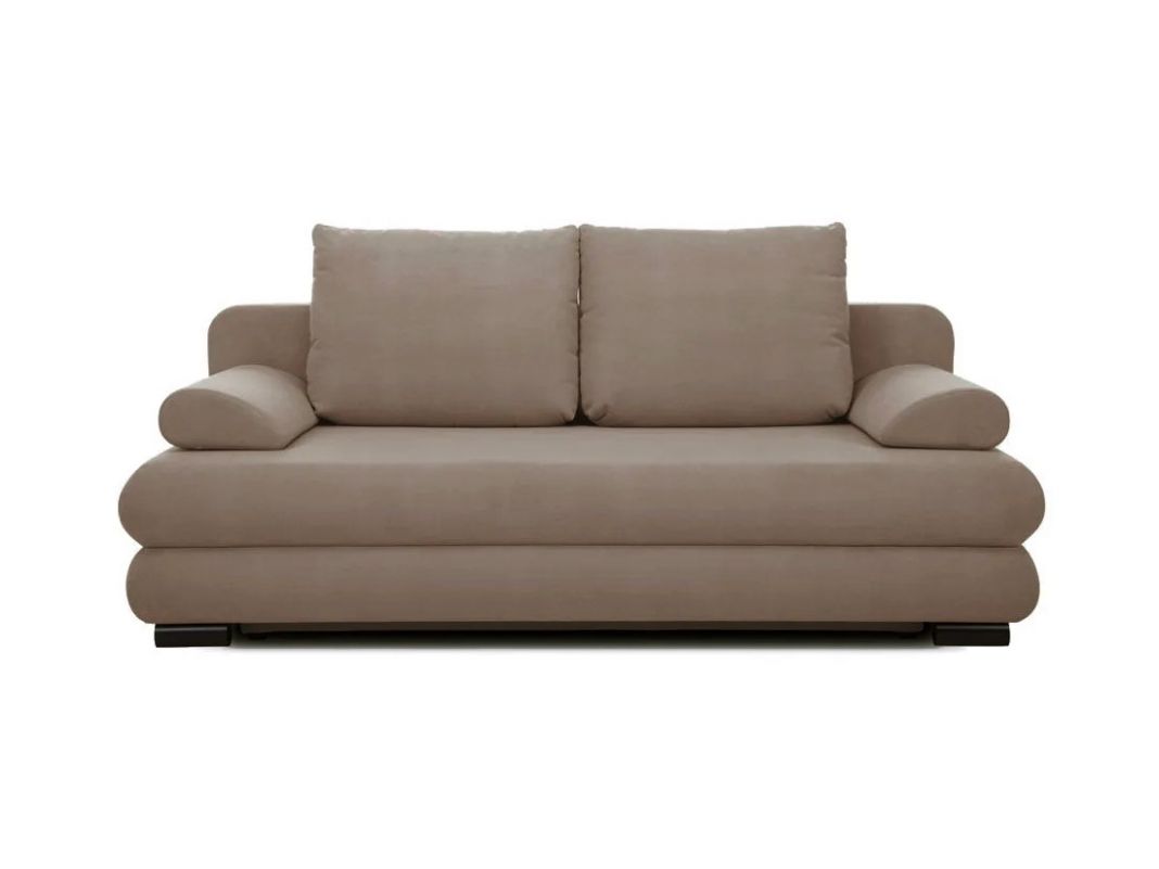 Практичный диван со съемными подлокотниками. Сиденье, в основании которого — деревянный щит и независимый пружинный блок, мягкое и ровное, а съемные подушки-подлокотники позволяют при необходимости увеличить его площадь. На выбор две длины дивана — 1900 мм и 2020 мм. Ножки облицованы шпоном дуба цвета венге или ореха. Диван удобно раскладывать благодаря простому и надежному механизму трансформации. Спальные принадлежности легко помещаются в объемный бельевой ящик. При небольших габаритах дивана спальное место достаточно просторно.