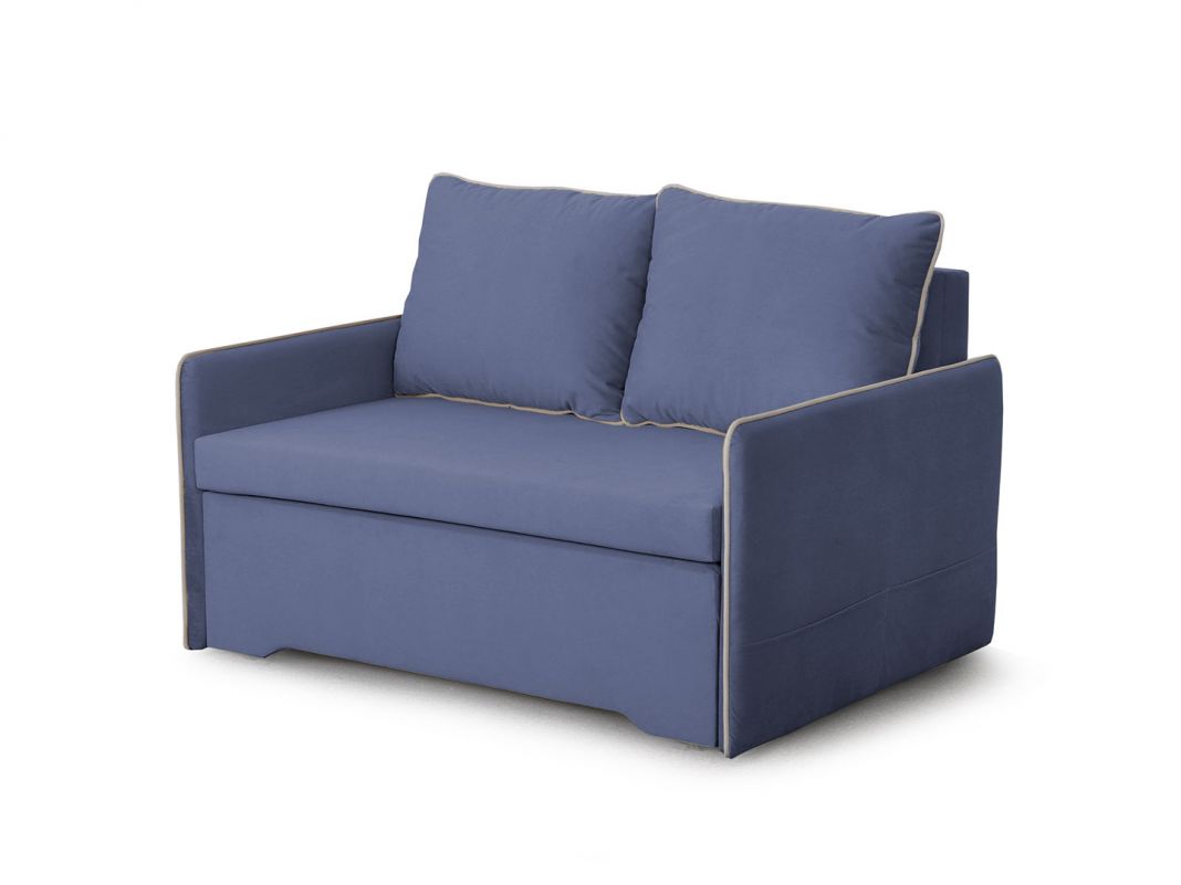 Ширина: 129смсм.; Глубина: 88см.; высота: 74см.; Механизм: выкатной; Мягкий настил: ППУ повышенной эластичности; Обивка: микровелюр; Названия тканей: мора деним/мора бежевый; Декор: без декора; Цвет: синий; Ящик для белья: есть
