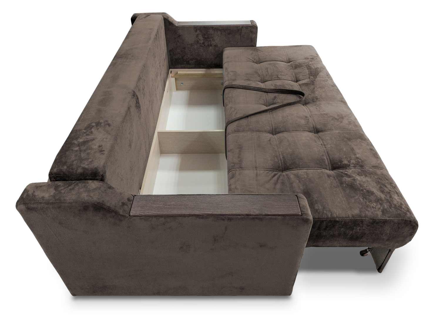 Диван Мальта выполнен в современном минималистичном стиле со спальным местом на основе блока независимых пружин. У дивана практичные подлокотники с накладкой из МДФ. Отстрочка чехла дивана предотвращает вытягивание ткани в процессе эксплуатации. Спальное место с механизмом еврокнижка подходит для ежедневного использования. Возможно оснастить диван механизмом Пантограф. Диван имеет вместительный бельевой ящик.