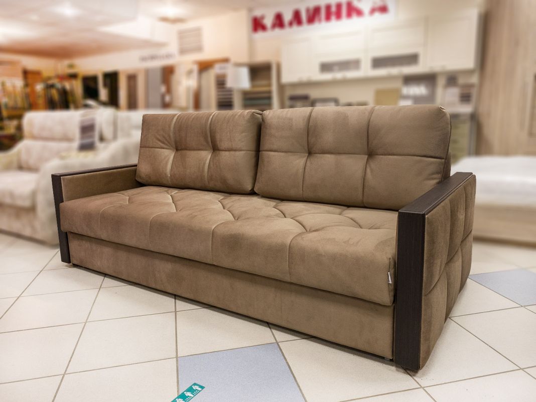 «Пантограф» на металлокаркасе. При раскладывании механизма получается комфортное двуспальное место для полноценного сна. Лаконичный дизайн, строгие линии подлокотников, геометрическая стежка чехла выделяют диван в модельном ряду. Шагающий механизм прост и долговечен. Для модели есть кресло.