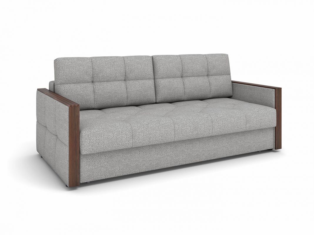 «Пантограф» на металлокаркасе. При раскладывании механизма получается комфортное двуспальное место для полноценного сна. Лаконичный дизайн, строгие линии подлокотников, геометрическая стежка чехла выделяют диван в модельном ряду. Шагающий механизм прост и долговечен. Для модели есть кресло.