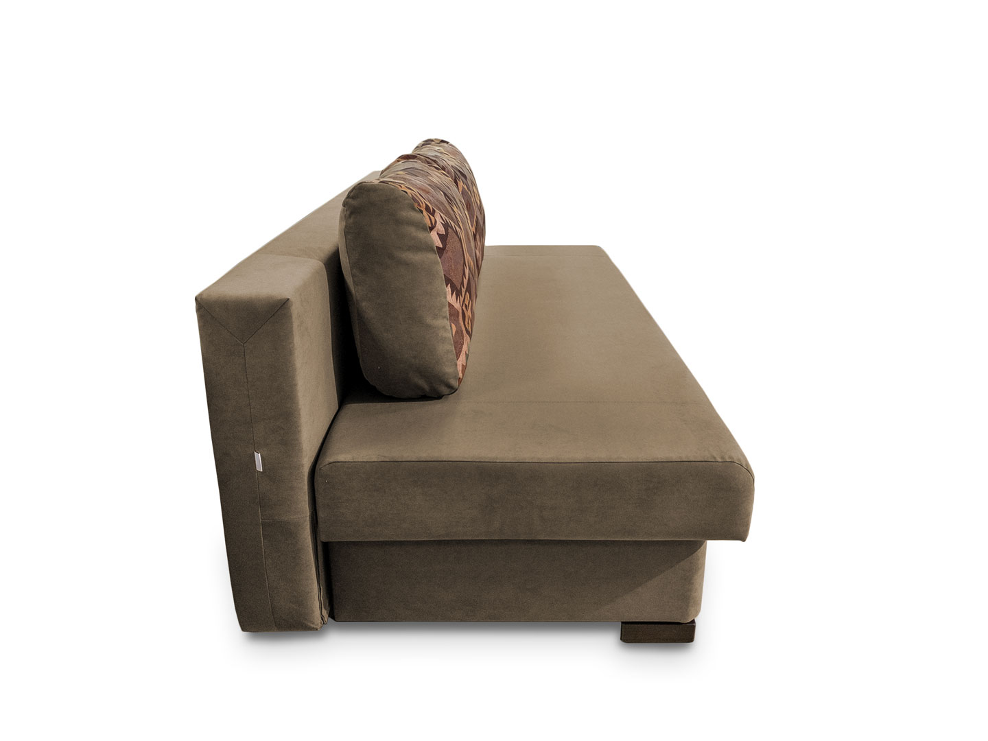 Лаконичный диван без подлокотников. Ровное упругое сиденье дивана на основе блока независимых пружин отлично подойдет для ежедневного сна. Удобный механизм раскладывания пантограф (тик-так) легко раскладывается и не повреждает напольное покрытие. Под сиденьем вместительный бельевой ящик. Один человек может спать на диване не раскладывая его.