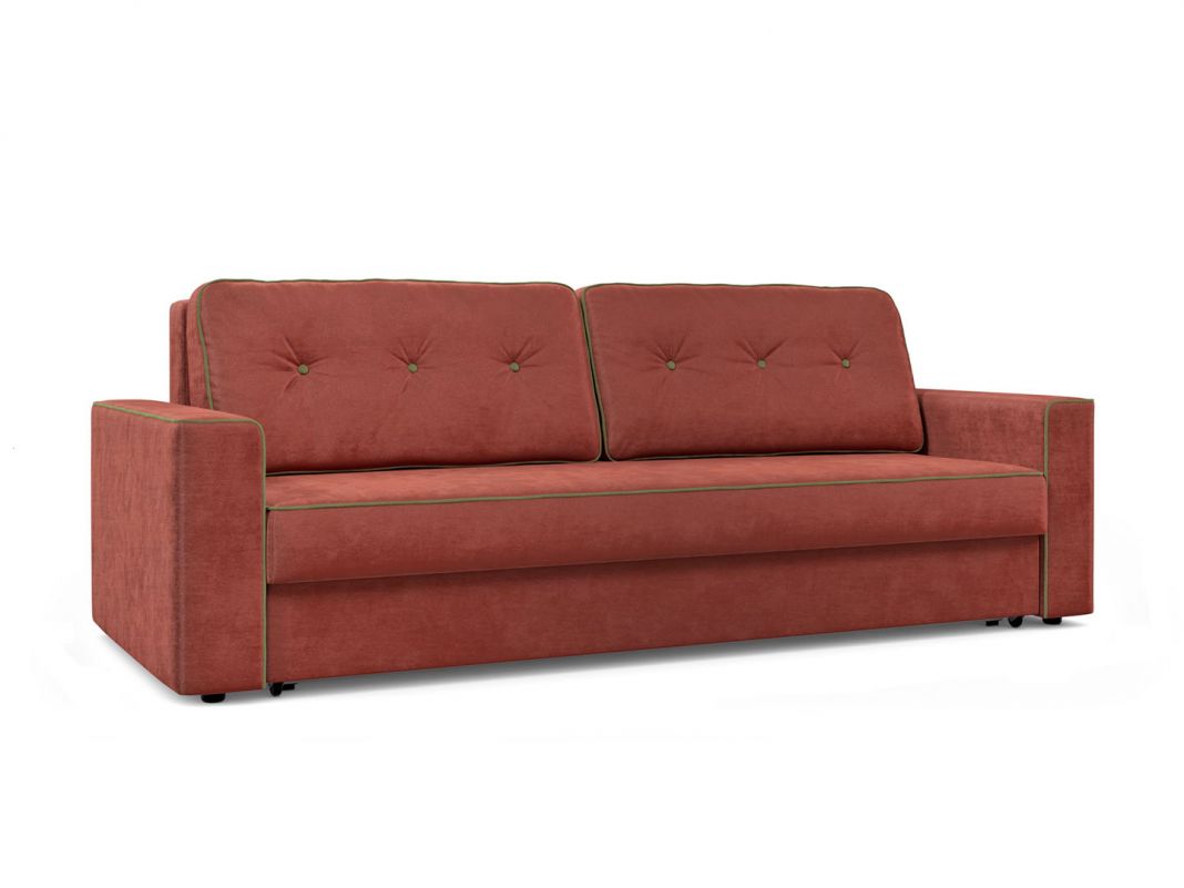 Современные формы с элементами классического дизайна: декоративные пуговицы на подушках, широкие подлокотники и контрастный кант по периметру дополнят ваш интерьер.