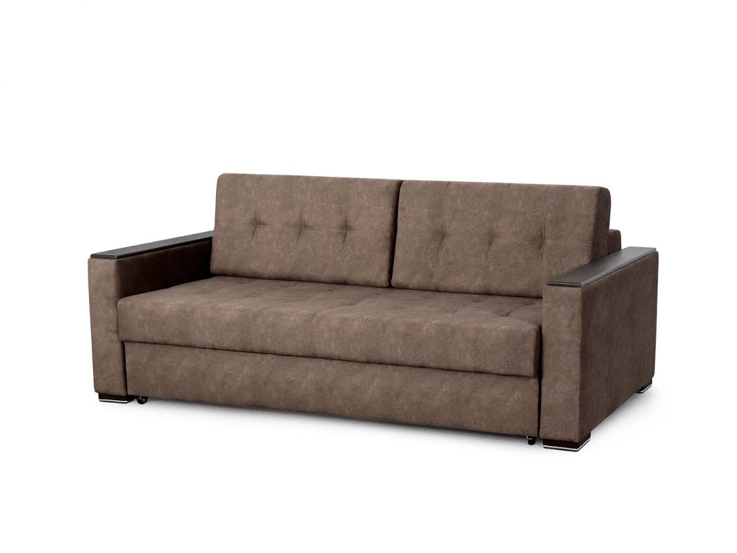 Диван в современном стиле со спальным местом на основе пружинного блока. Подлокотники оснащены практичными декоративными накладками из МДФ. Мпальное место с механизмом еврокнижка подходит для ещедневного оиспользования. Диван имеет вместительный бельевой ящик.