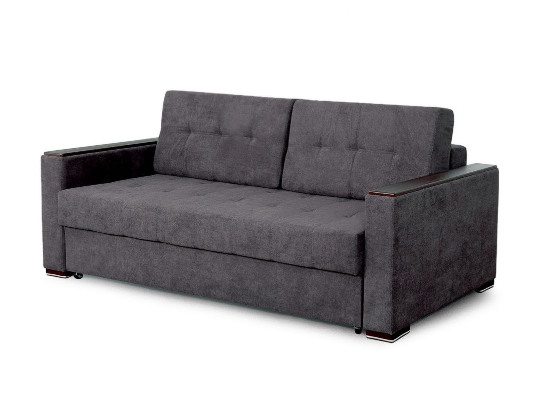 Диван в современном стиле со спальным местом на основе пружинного блока. Подлокотники оснащены практичными декоративными накладками из МДФ. Мпальное место с механизмом еврокнижка подходит для ещедневного оиспользования. Диван имеет вместительный бельевой ящик.