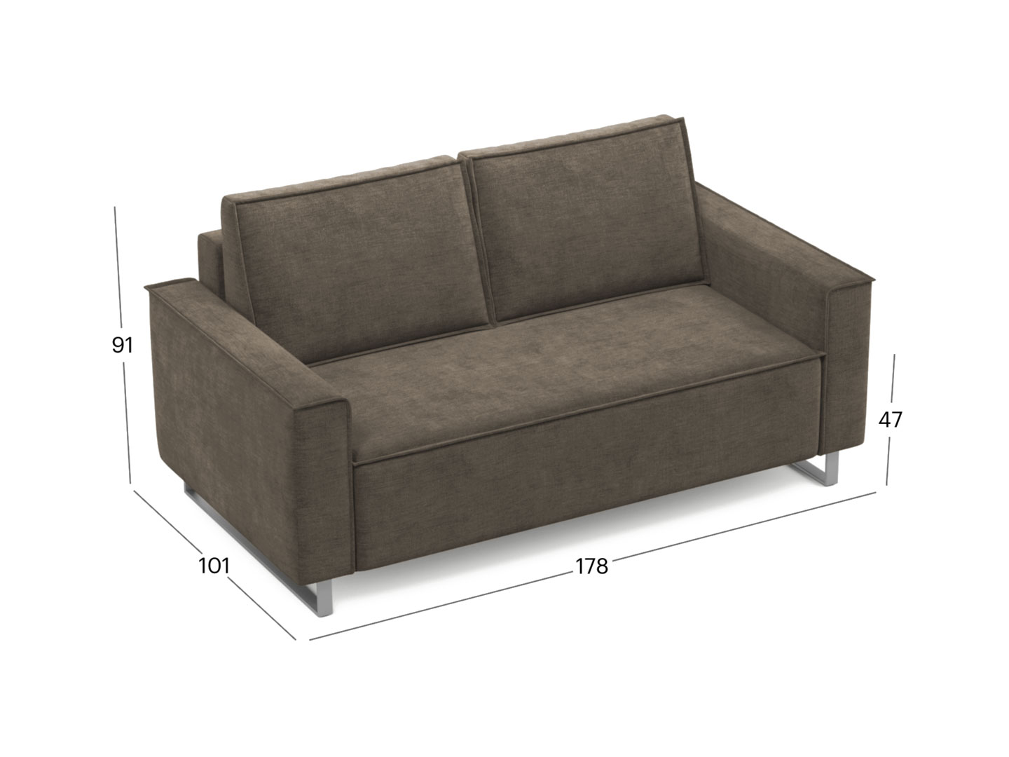 Оптимальная высота посадки, стильные опоры и оригинальная внешность дивана соединяют стиль, комфорт и практичность. Простая форма и объемная фактура подлокотников — часть брутальной эстетики, дань моде.