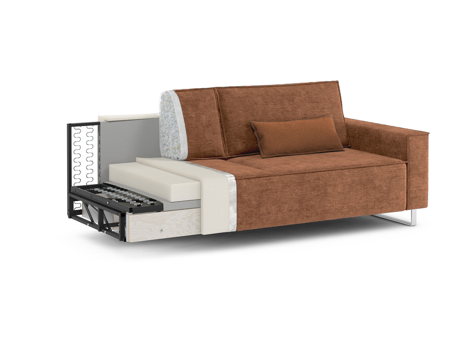 Механизм трансформации «Пантограф» подходит для ежедневного использования. Позволяет легко раскладывать и складывать диван, обеспечивая минимальный контакт дополнительных опор с напольным покрытием. Диван стоит на линейных опорах, в то время как дополнительные остаются скрытыми, появляясь плавно и бесшумно в единственно нужный момент — при трансформации дивана в кровать.