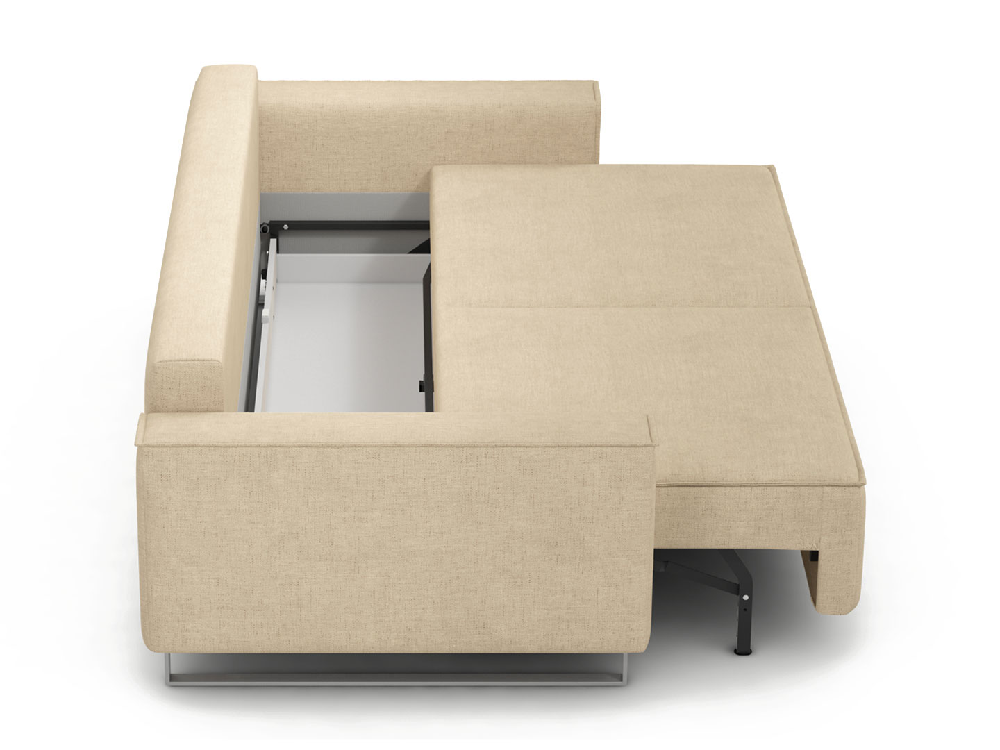 Механизм трансформации «Пантограф» подходит для ежедневного использования. Позволяет легко раскладывать и складывать диван, обеспечивая минимальный контакт дополнительных опор с напольным покрытием. Диван стоит на линейных опорах, в то время как дополнительные остаются скрытыми, появляясь плавно и бесшумно в единственно нужный момент — при трансформации дивана в кровать.