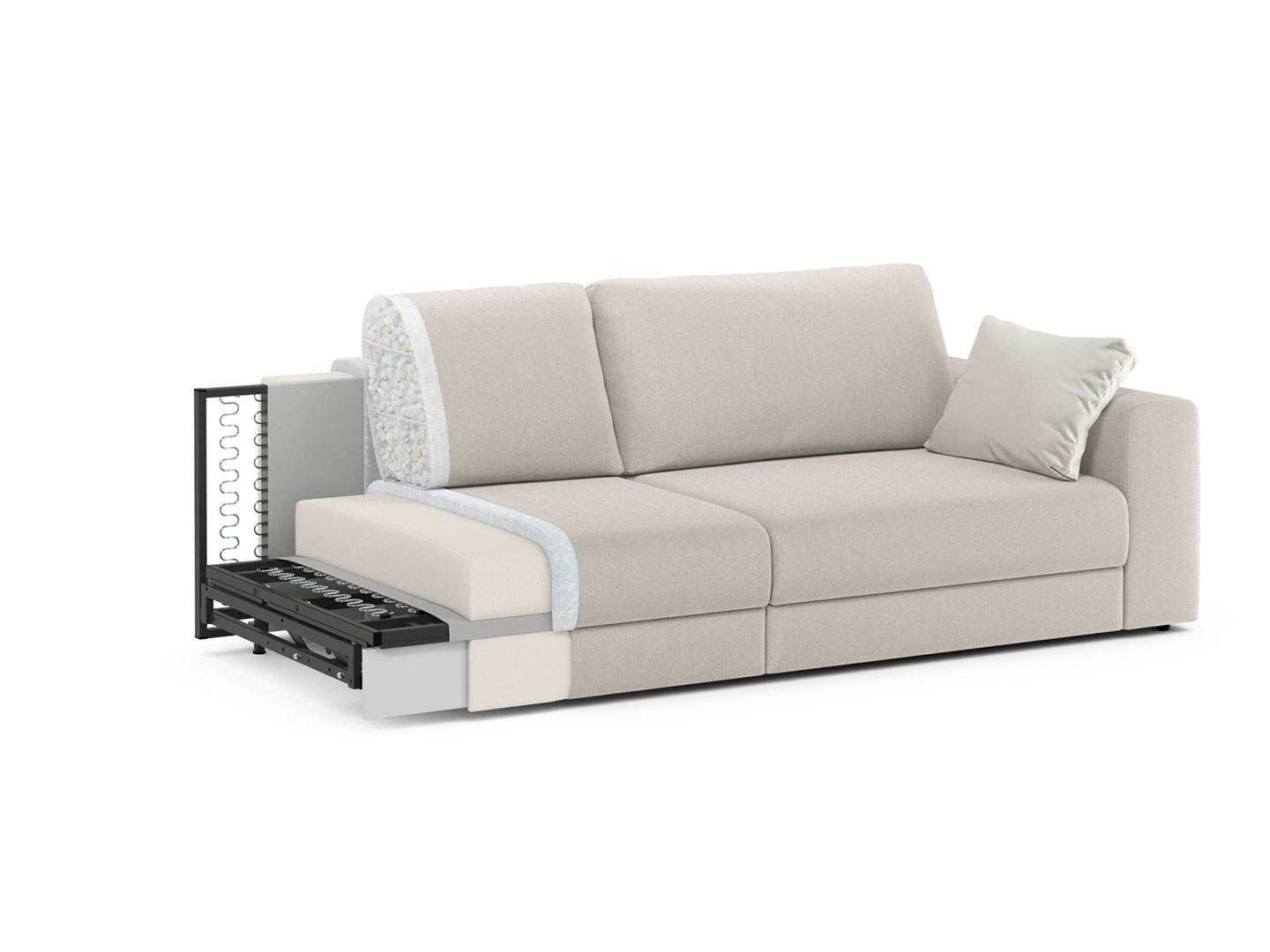 Для дивана характерна глубокая и низкая посадка, создающая во время отдыха особый комфорт. Запатентованные фиксаторы пружинной змейки исключают трение металла о металл и предотвращают возникновение скрипов.