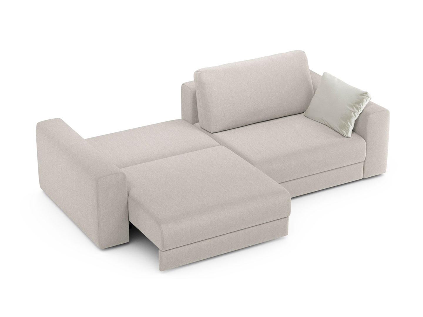 Многомодульный проект позволяет создавать уникальную комбинацию за счет различных модульных элементов, подчеркивая индивидуальность интерьера. Благодаря трансформируемым модулям, диван превращается в мягкий подиум для отдыха, к которому можно подойти с разных сторон. Два варианта подлокотников наделяют диван дополнительной функциональностью. Мягкие подлокотники — это тренд, сохраняющий единство образа. Подлокотники с нишей для хранения позволяют держать полезные мелочи под рукой, а на столешницу всегда можно положить телефон и поставить чашечку чая.