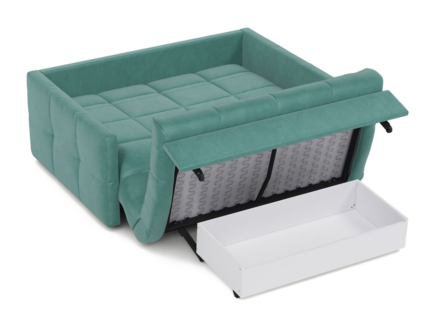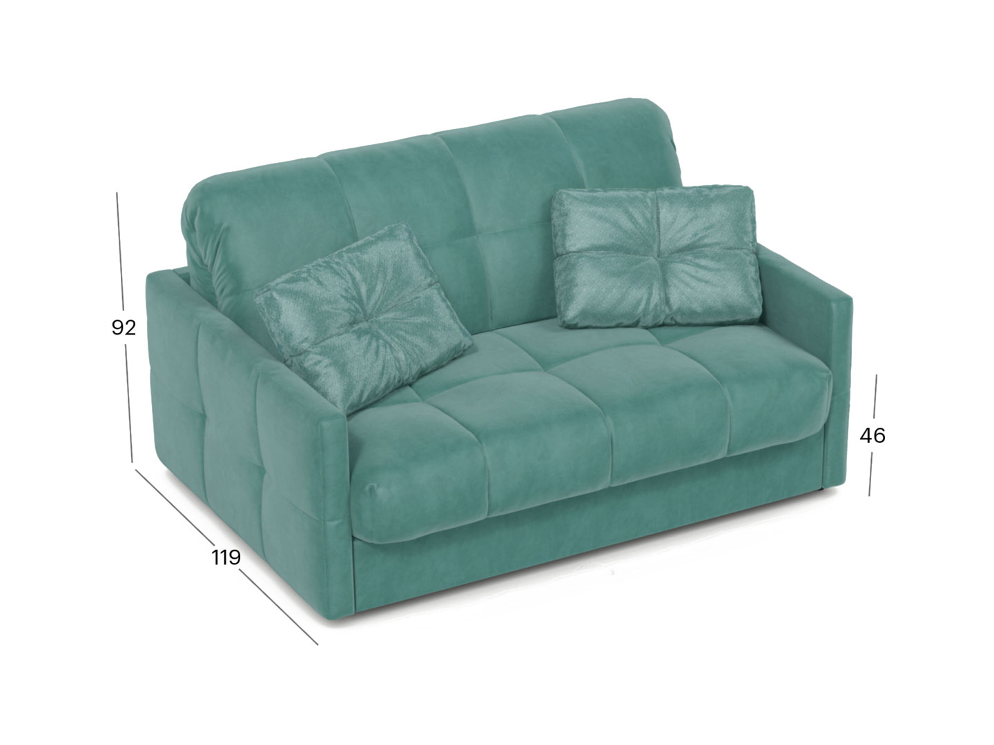 - При минимальных габаритах диван обладает отличным спальным местом.