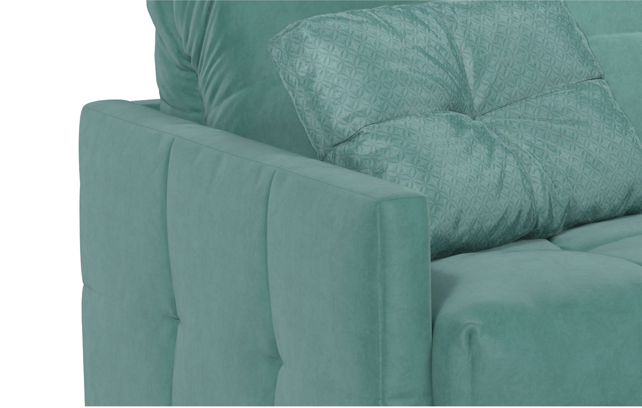 Благодаря оптимальной ширине подлокотников, модель великолепно экономит пространство. Горизонтальная плоскость декора на подлокотниках может служить в качестве мини-столешницы, например, для чашечки кофе или небольших предметов.