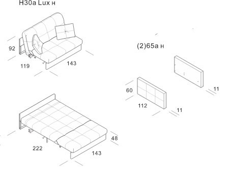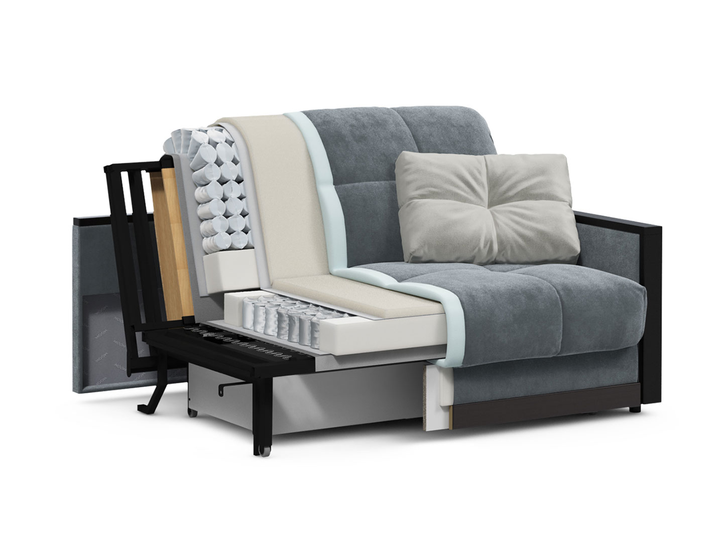 Дополнительный комфорт создается за счет объемных декоративных подушек с устойчивыми к деформации наполнителями Filler«Sheep»®, FoamChips и утяжкой Cushion. Спальное место ровное и просторное, с ортопедическим основанием из березовых лат, в 5 размерах: от 83х215 см до 183х215 см. Дополнительный комфорт для сна придаст топпер или наматрасник.