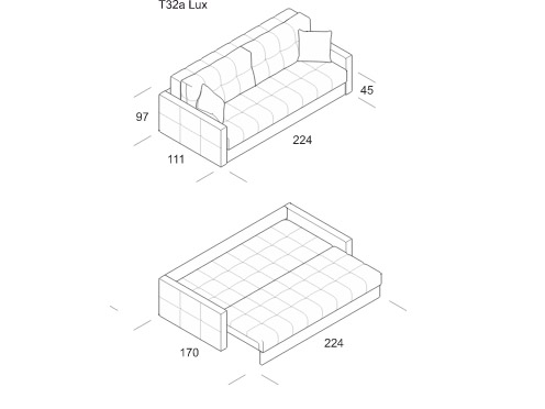 - Механизм трансформации - «Пантограф» («Тик-так») на металлокаркасе. Сиденье и откидная спинка образуют двуспальное место.