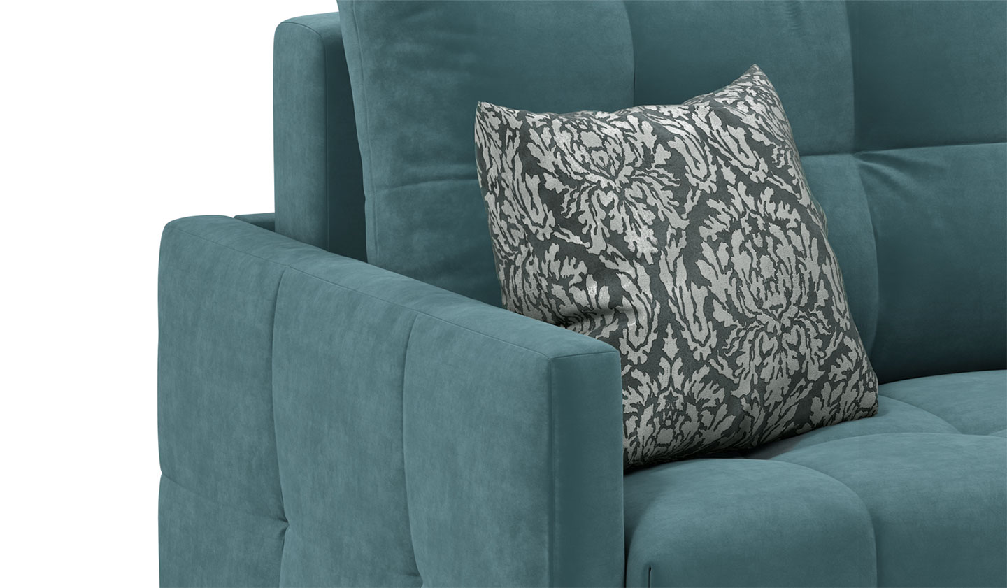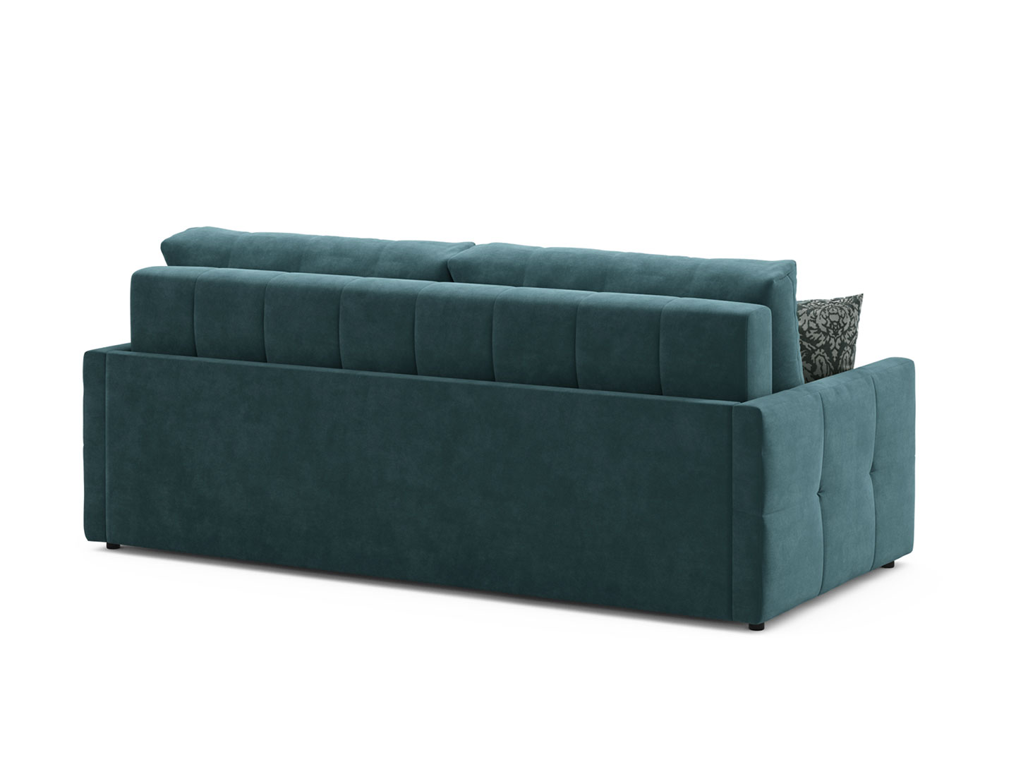 Диван укомплектован двумя приспинными подушками, с помощью которых можно отрегулировать глубину сидений. Воздухопроницаемость подушек обеспечивает специальная вставка из фирменного жаккарда MOON. Декоративные подушки наполнены современным инновационным материалом Filler«Sheep» и FoamChips. При их набивке применяется технология MultiZone, которая сохраняет форму и продлевает срок их службы. В данном дизайне предусмотрено ровное и просторное спальное место размером 165х200 см. На откидной спинке, образующей спальное место, применяется технология Cushion, которая также исключает деформацию, сохраняя первозданный вид в течение длительного времени.