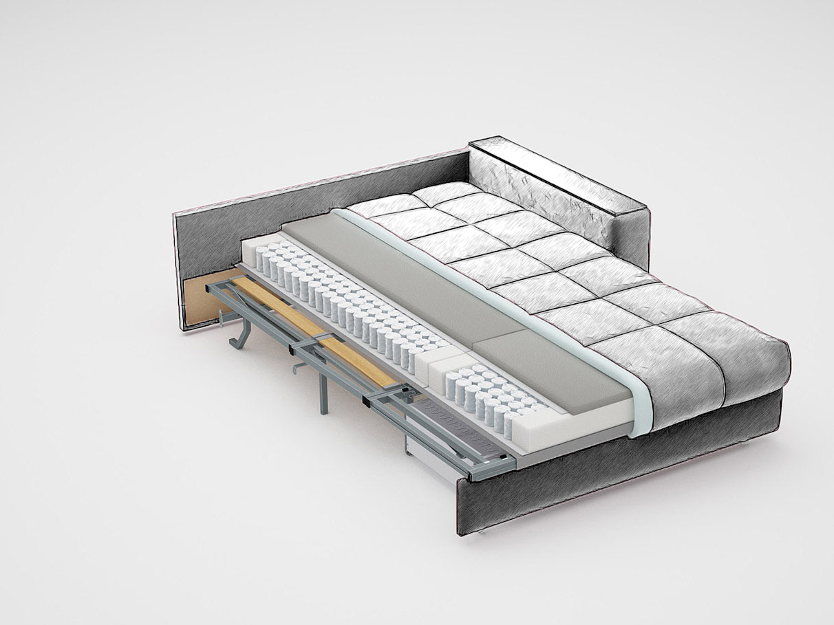 Дополнительный комфорт создается за счет эргономичных подлокотников и объемных декоративных подушек с устойчивыми к деформации наполнителями Filler«Sheep»®и FoamChips с применением технологии утяжки Cushion. Спальное место ровное и просторное, с ортопедическим основанием из березовых лат, в 5 размерах: от 83х215 см до 183х215 см. Дополнительный комфорт для сна придаст топпер или наматрасник.