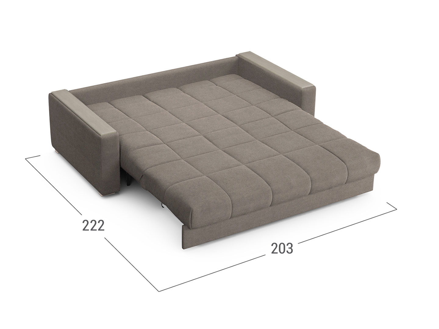 Дополнительный комфорт создается за счет эргономичных подлокотников и объемных декоративных подушек с устойчивыми к деформации наполнителями Filler«Sheep»®и FoamChips с применением технологии утяжки Cushion. Спальное место ровное и просторное, с ортопедическим основанием из березовых лат, в 5 размерах: от 83х215 см до 183х215 см. Дополнительный комфорт для сна придаст топпер или наматрасник.