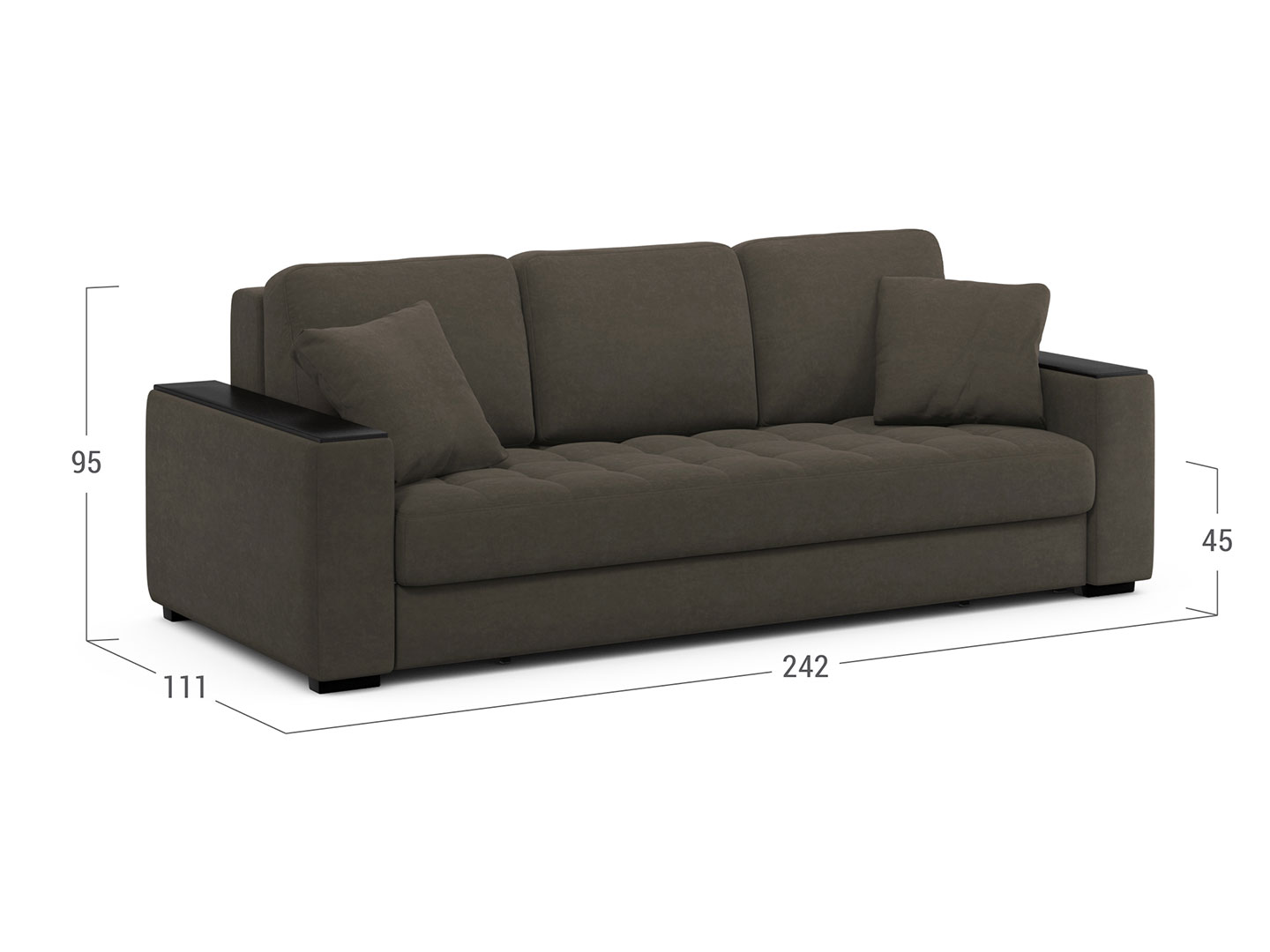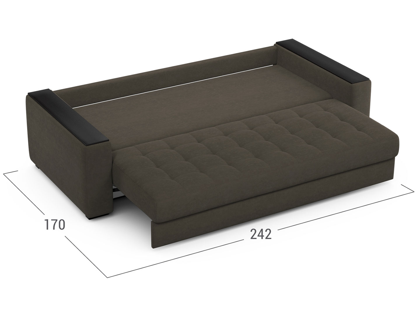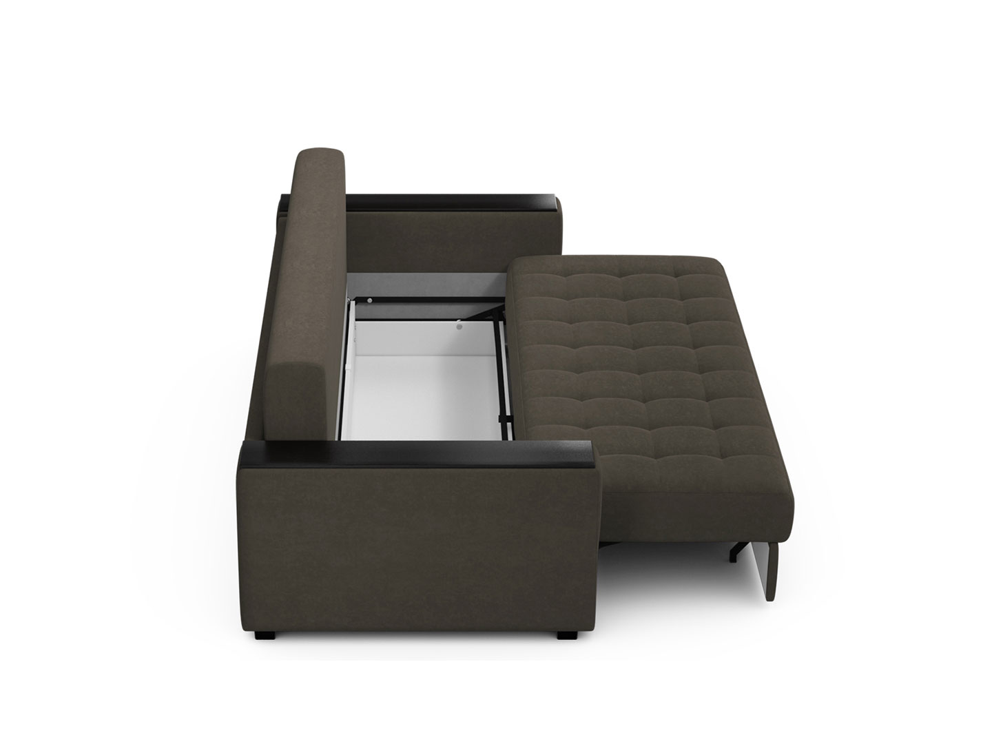 - Система трансформации - «Пантограф» («Тик-так») на металлокаркасе. Сиденье и откидная спинка образуют двуспальное место. Сиденье мягко приподнимается и встаёт на опоры, на освобожденное пространство горизонтально опускается мягкая спинка дивана.