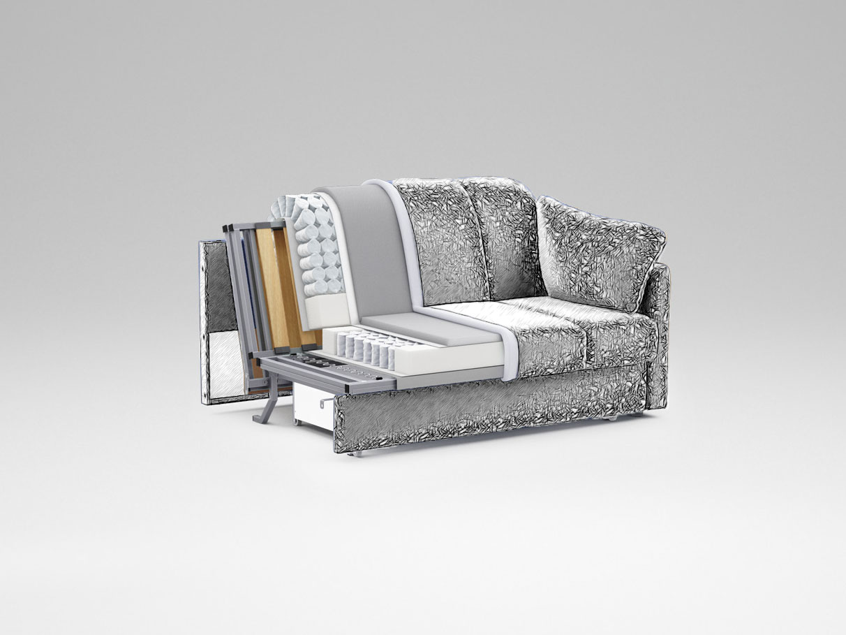 Дополнительный комфорт создается за счет эргономичных подлокотников и объемных декоративных подушек с устойчивыми к деформации наполнителями Filler«Sheep»® и FoamChips с применением технологии MultiZone. Спальное место ровное и просторное, с ортопедическим основанием из березовых лат, в 5 размерах: от 83х215 см до 183х215 см. Дополнительный комфорт для сна придаст топпер или наматрасник.