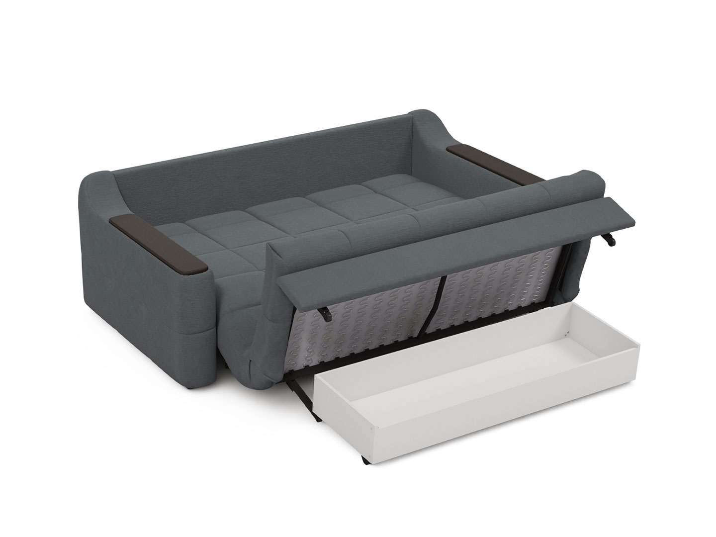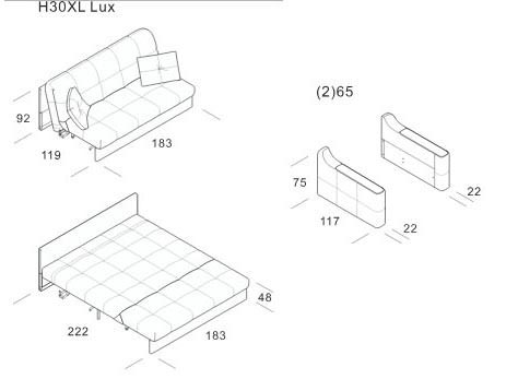 Дополнительный комфорт создается за счет эргономичных подлокотников и объемных декоративных подушек с устойчивыми к деформации наполнителями Feel«Sheep»®и FoamChips с применением технологии утяжки Cushion. Спальное место ровное и просторное, с ортопедическим основанием из березовых лат, в 5 размерах: от 83х215 см до 183х215 см. Его дополнят удобные топперы и наматрасники.