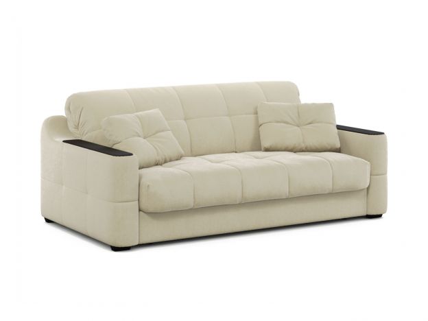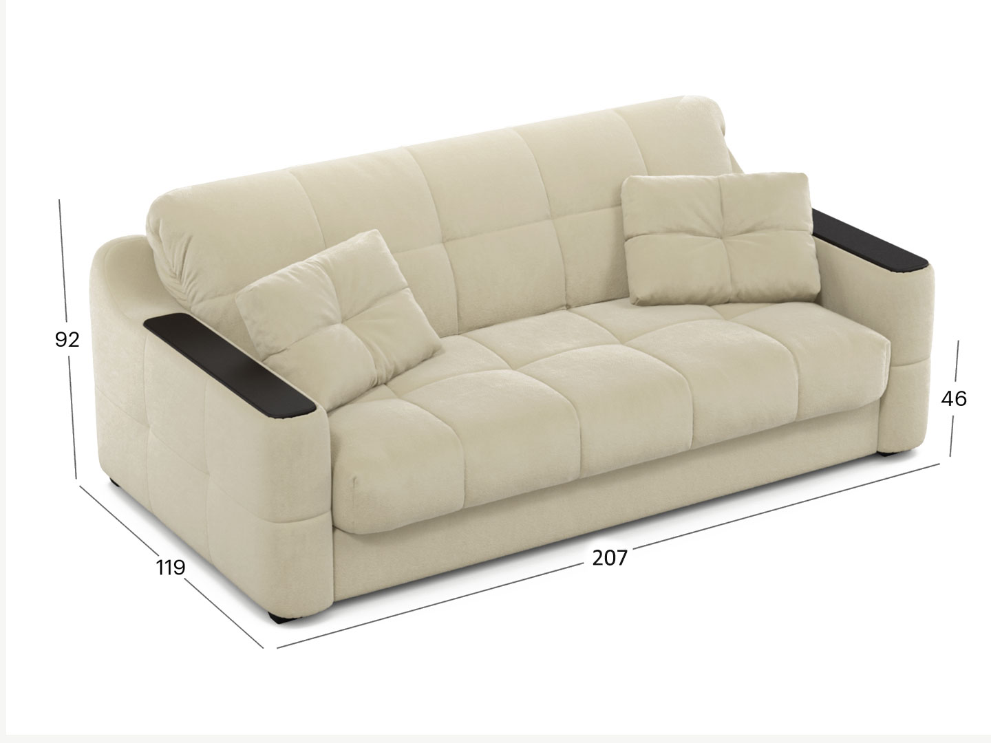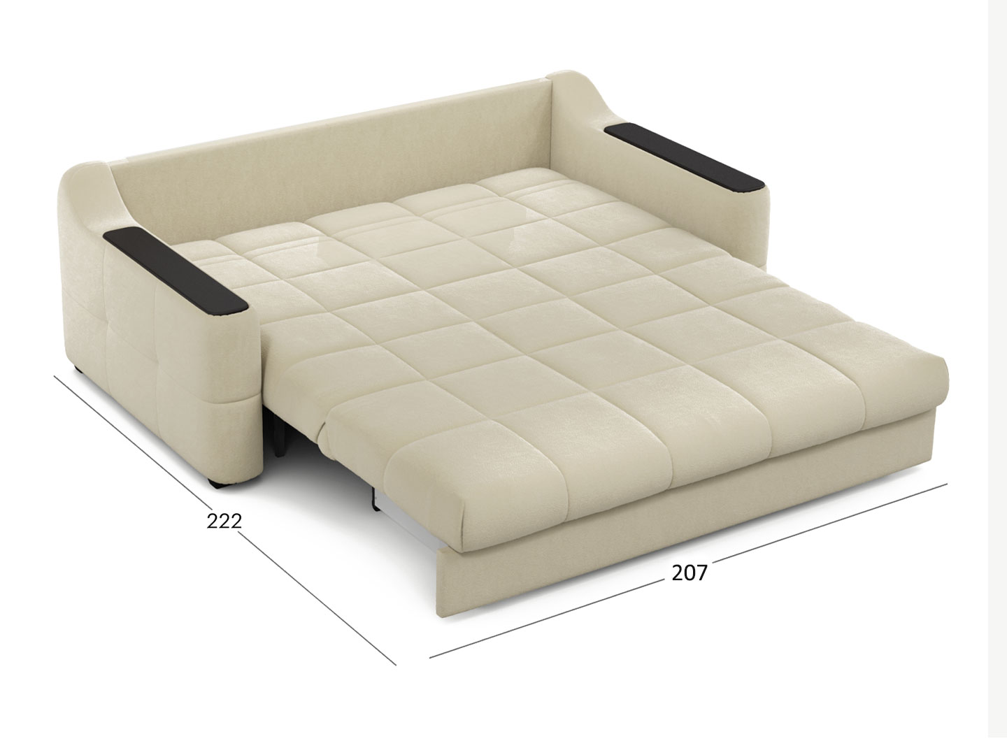 Дополнительный комфорт создается за счет эргономичных подлокотников и объемных декоративных подушек с устойчивыми к деформации наполнителями Feel«Sheep»®и FoamChips с применением технологии утяжки Cushion. Спальное место ровное и просторное, с ортопедическим основанием из березовых лат, в 5 размерах: от 83х215 см до 183х215 см. Его дополнят удобные топперы и наматрасники.