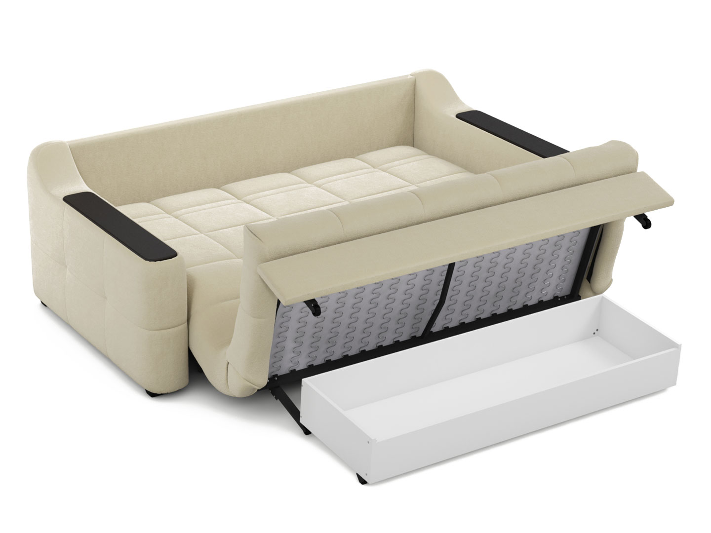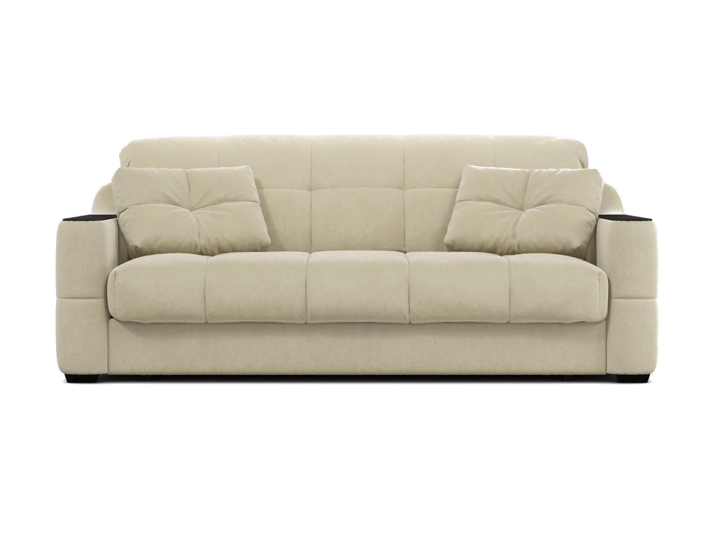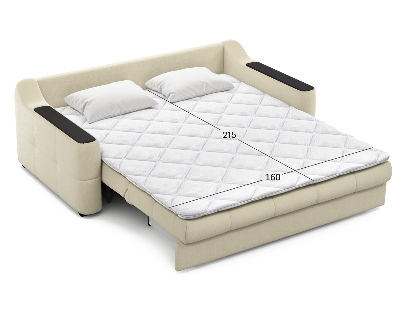 Дополнительный комфорт создается за счет эргономичных подлокотников и объемных декоративных подушек с устойчивыми к деформации наполнителями Feel«Sheep»®и FoamChips с применением технологии утяжки Cushion. Спальное место ровное и просторное, с ортопедическим основанием из березовых лат, в 5 размерах: от 83х215 см до 183х215 см. Его дополнят удобные топперы и наматрасники.