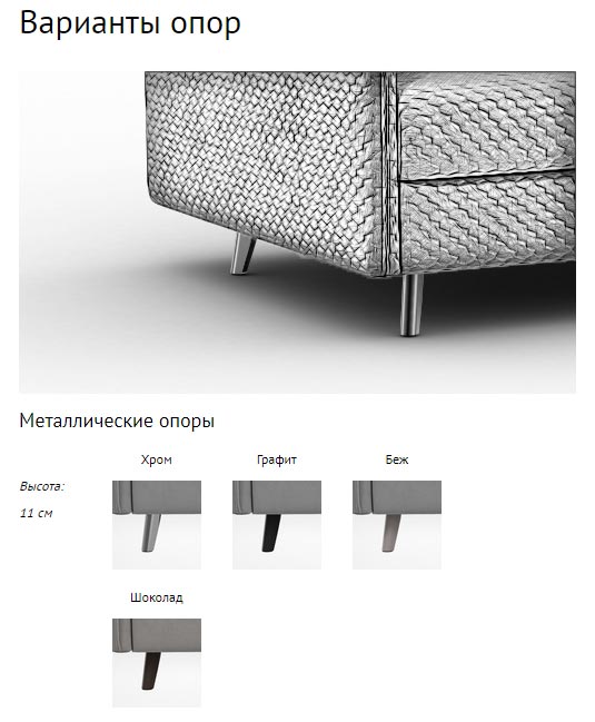 Идеальное решение для современного интерьера, в котором так важно сохранение свободного пространства. Выбор цвета опор — Графит, Хром, Беж и Шоколад позволяет создать максимально эстетичный интерьер.