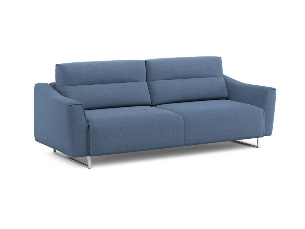 Диван стоит на двух основных трапециевидных опорах, в то время как дополнительные остаются скрытыми, появляясь плавно и бесшумно в единственно нужный момент — при трансформации дивана в кровать.