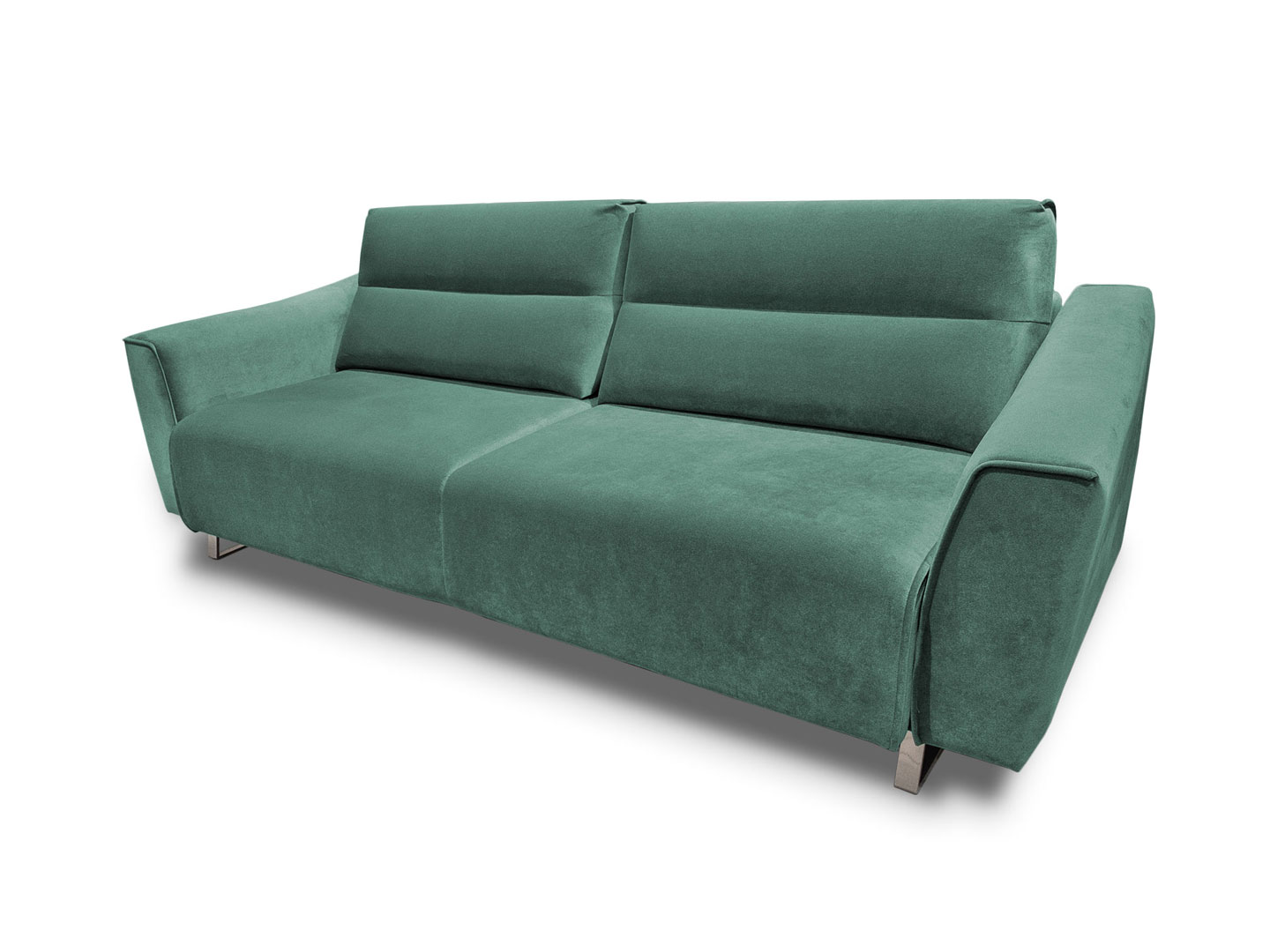 Диван стоит на двух основных трапециевидных опорах, в то время как дополнительные остаются скрытыми, появляясь плавно и бесшумно в единственно нужный момент — при трансформации дивана в кровать.