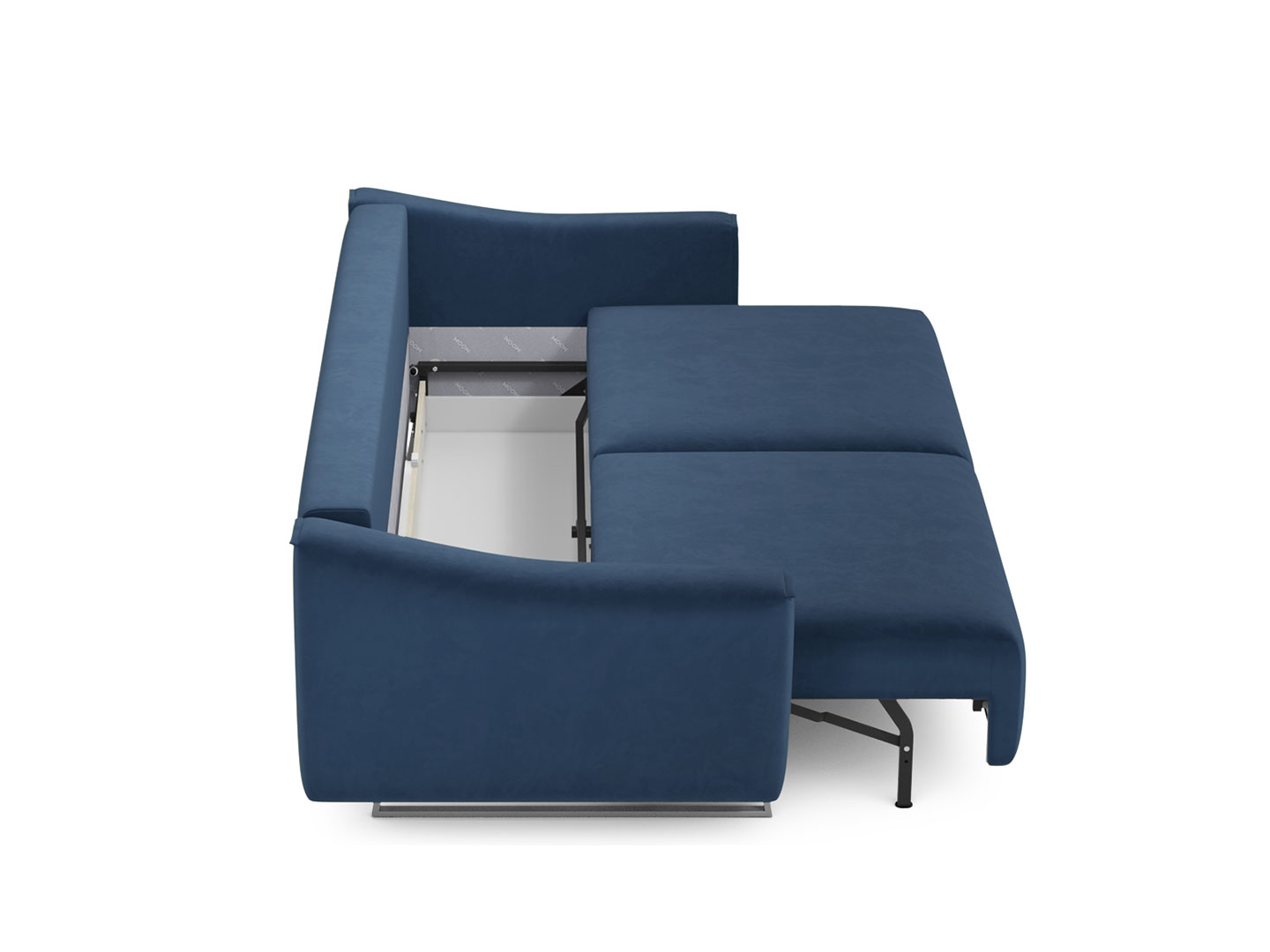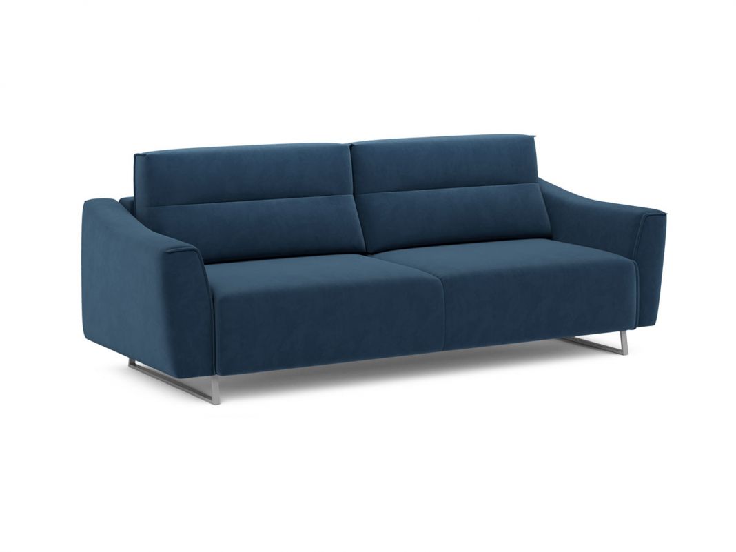 Диван стоит на двух основных трапециевидных опорах, в то время как дополнительные остаются скрытыми, появляясь плавно и бесшумно в единственно нужный момент — при трансформации дивана в кровать.