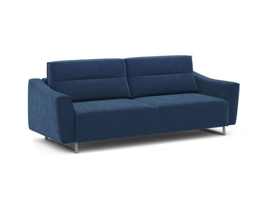 Диван стоит на двух основных трапециевидных опорах, в то время как дополнительные остаются скрытыми, появляясь плавно и бесшумно в единственно нужный момент — при трансформации дивана в кровать.