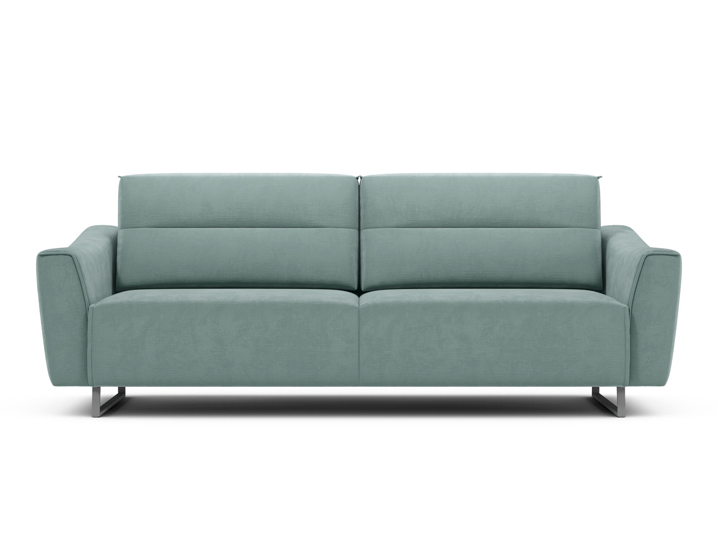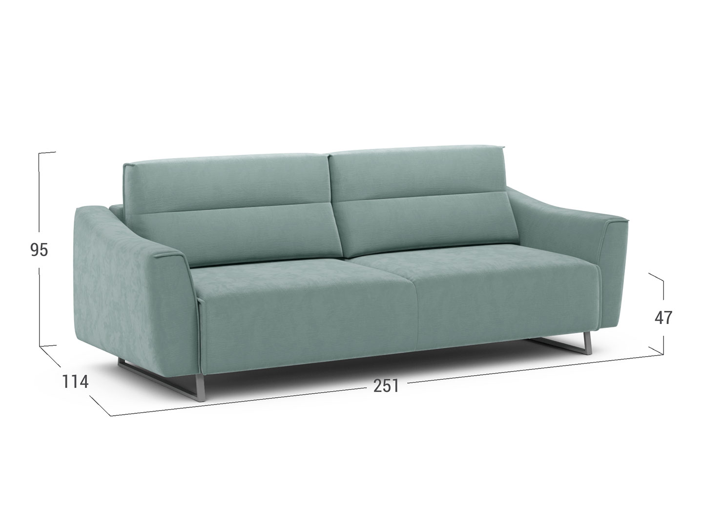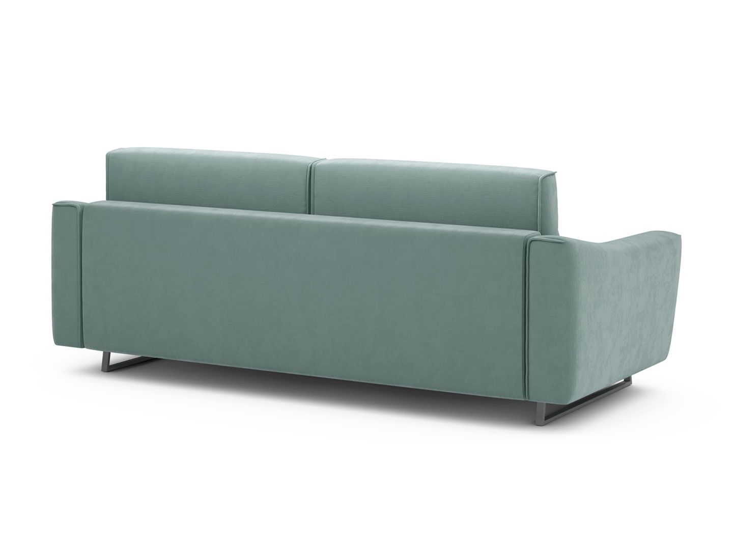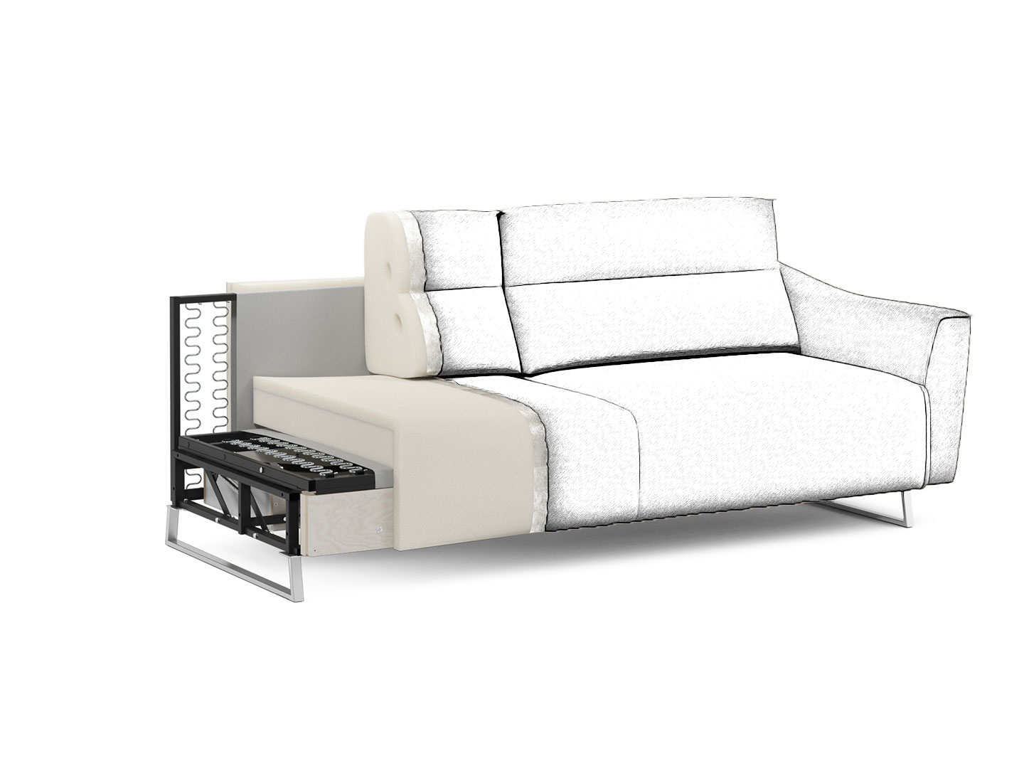Диван стоит на двух основных трапециевидных опорах, в то время как дополнительные остаются скрытыми, появляясь плавно и бесшумно в единственно нужный момент — при трансформации дивана в кровать.