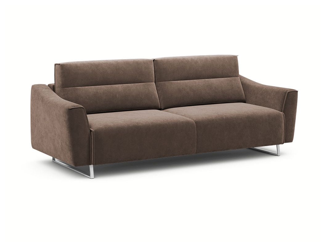 Диван стоит на двух основных трапециевидных опорах, в то время как дополнительные остаются скрытыми, появляясь плавно и бесшумно в единственно нужный момент — при трансформации дивана в кровать.