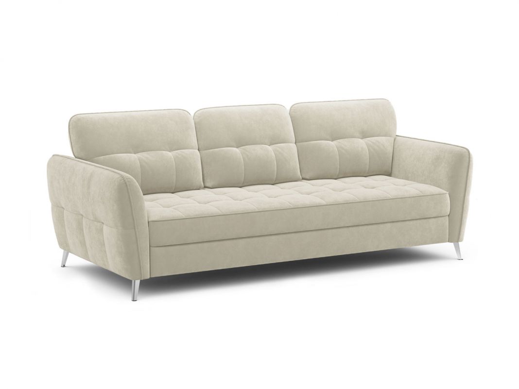 Четыре варианта цвета опор — Графит, Хром, Беж и Шоколад позволяют сделать интерьер максимально эстетичным. Спинка, выполненная в обивочной ткани, позволяет ставить диван в центре комнаты и зонировать пространство. Благодаря отсутствию задней спинки, к дивану в разобранном виде, можно подойти с разных сторон, как к кровати.