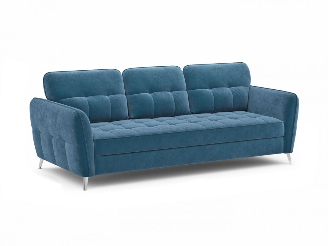 Четыре варианта цвета опор — Графит, Хром, Беж и Шоколад позволяют сделать интерьер максимально эстетичным. Спинка, выполненная в обивочной ткани, позволяет ставить диван в центре комнаты и зонировать пространство. Благодаря отсутствию задней спинки, к дивану в разобранном виде, можно подойти с разных сторон, как к кровати.
