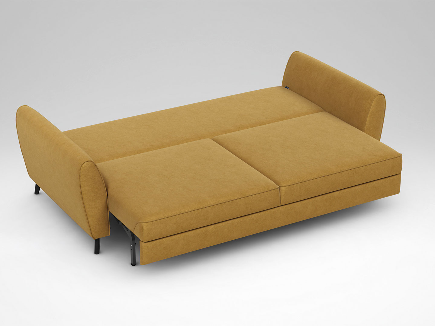 Выбор цвета опор — Графит, Хром, Беж и Шоколад позволяет создать максимально эстетичный интерьер. Спинка, выполненная в обивочной ткани, позволяет ставить диван в центре комнаты и зонировать пространство. Благодаря отсутствию задней спинки, к дивану в разобранном виде, можно подойти с разных сторон, как к кровати.
