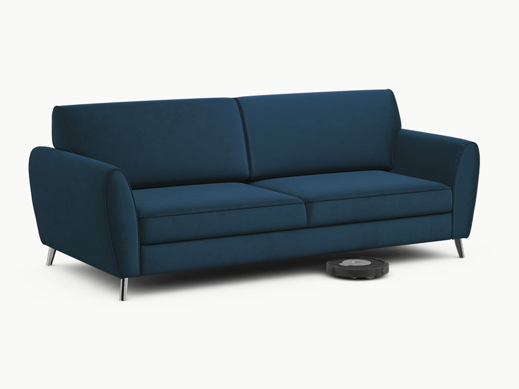 - Благодаря высоким опорам, под диваном проходит робот-пылесос и легко проводится влажная уборка, что обеспечивает чистоту и порядок в доме. Высота дивана от пола 11 см — эта информация пригодится при выборе робота-пылесоса.