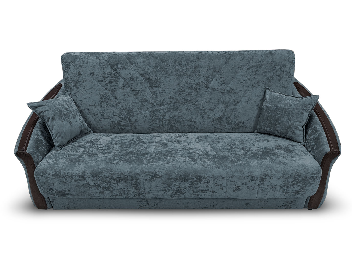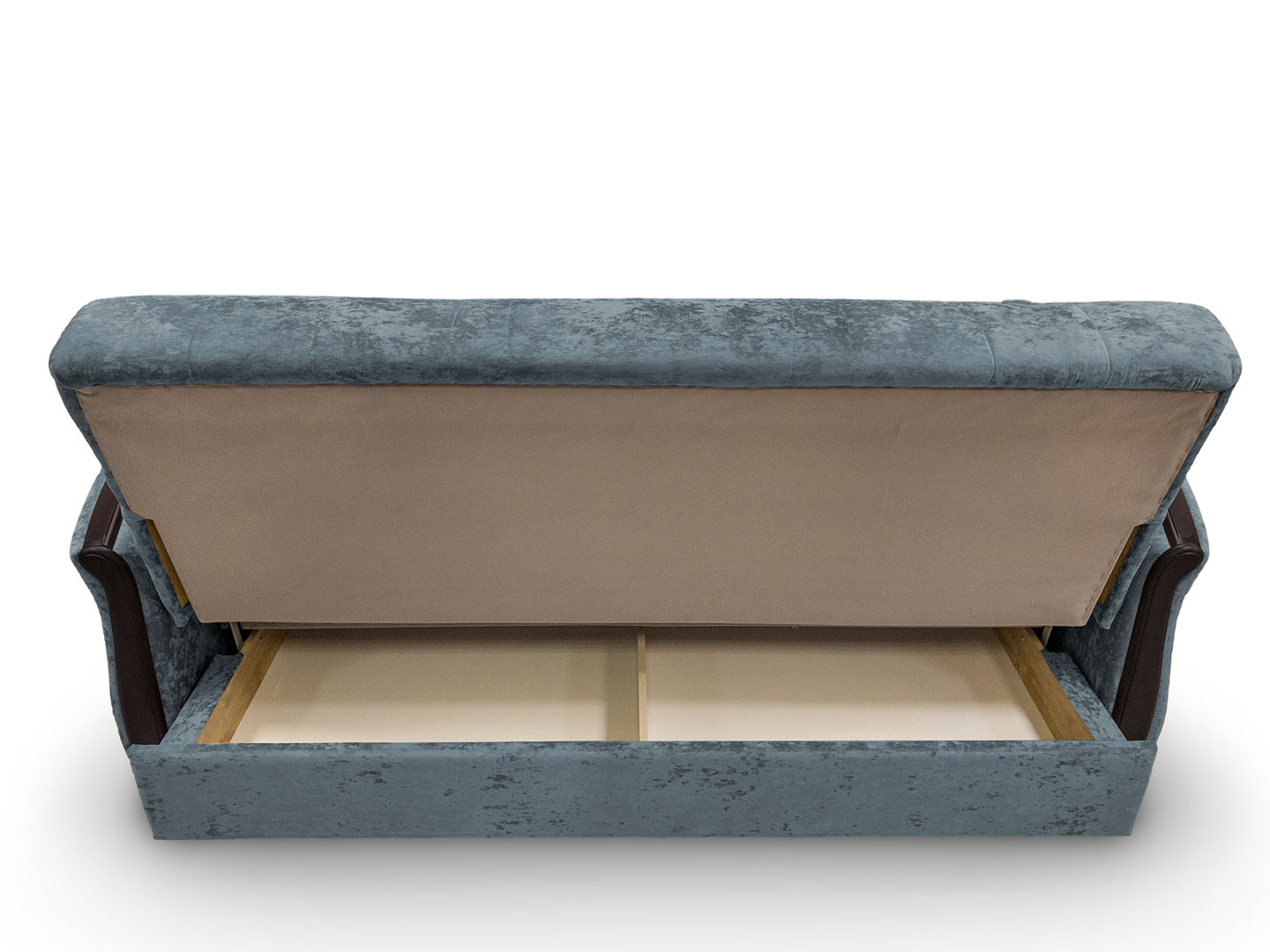 Механизм трансформации – диван книжка с откатом. Дополнительный выкатной механизм дивана – книжки "Олимп" позволяет размещать диван вплотную к стене, при раскладывании его не нужно отодвигать, а мягкая задняя планка исключает контакт со стеной. Спальное место – усиленный пркжинный блок + высокоэластичный ППУ. Можно выбрать блок независимых пружин или стандартный блок Bonelle. Деревянный декор из бука с многослойным лаковым покрытием. Направляющие и ножки из твёрдых пород дерева. Бельевой ящик из ламинированного ДВП и ДСП