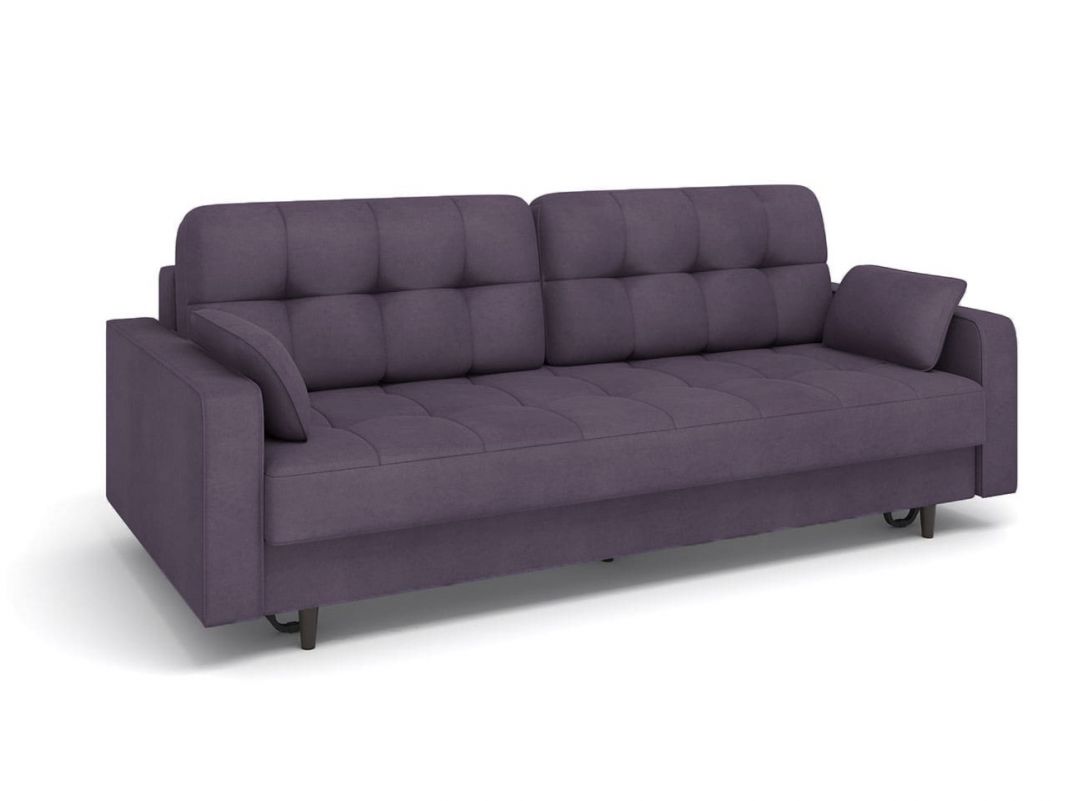 Ширина: 229смсм.; Глубина: 114см.; высота: 90см.; Механизм: пантограф (тик-так); Мягкий настил: независимый пружинный блок; Обивка: велюр; Названия тканей: lamb plum; Декор: без декора; Цвет: фиолетовый; Ящик для белья: есть